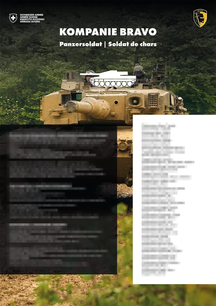 Lors de mon service militaire, j’ai eu la chance d’être sélectionné pour m’occuper des réseaux sociaux de mon école, la Panzerschule21. Tous les jours, j’allais sur le terrain dans le but de créer du contenu pour les réseaux sociaux, que ce soit photos ou vidéos. J’ai aussi dû réaliser, dans le cadre de certaines missions, des supports imprimés.