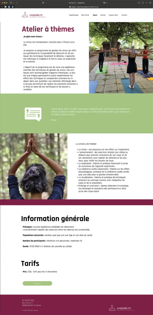 Réalisation d’une identité graphique et d’un site web pour un particulier de la région. Le projet a été fait en collaboration avec Pablo Rial Diaz, qui s’est occupé de l’identité graphique.